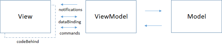 MVVMとは MVVM Twitter Facebook はてブ Pocket LINE コピー 2021.05.052021.05.04 MVVMパターンは、Model/View/ViewModelの3つの責務にアプリケーションを分割するパターンです。「ビジネス・ロジックとプレゼンテーション・ロジックを分割する」という目的とともに、開発者がUIデザイナーと協業でアプリケーションを作っていく未来を見据えたパターンでもあります。ViewはViewModelに依存し、ViewModelはModelに依存します。逆方向の依存はありません。また、コードビハインドにはコードはかきません。